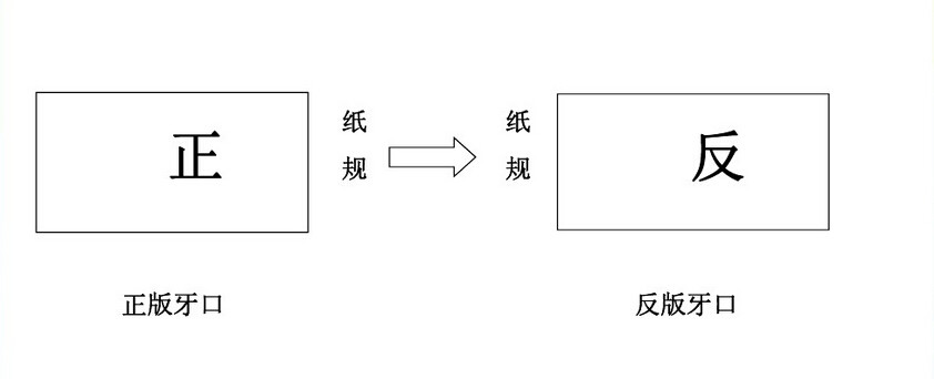 a、單面車(chē)印。排版上(shàng)下對稱,一正一反。正版(面)與反版(面)印色相同,印版共享.印完正版印色,上(shàng)下反紙(牙口與版尾反紙),不換版,繼續印反版印色。印版數(shù)量為(wèi)正版印色總和(hé)。